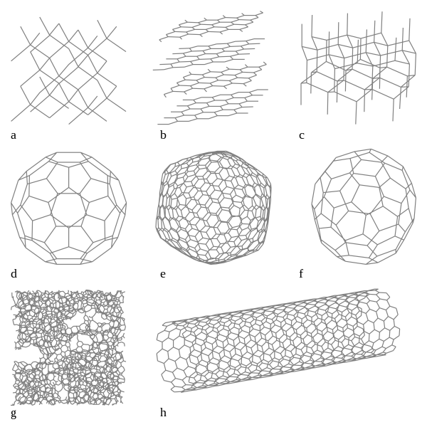 [Eight Allotropes of Carbon: Eight allotropes of carbon: (a) diamond, (b) graphite, (c) lonsdaleite, (d) C60 buckminsterfullerene, (e) C540 fullerite (f) C70 fullerene, (g) amorphous carbon, (h) zig-zag single-walled carbon nanotube. Missing: cyclocarbon, carbon nanobuds, schwarzites, glassy carbon, and linear acetylenic carbon (carbyne) - Wikipedia]